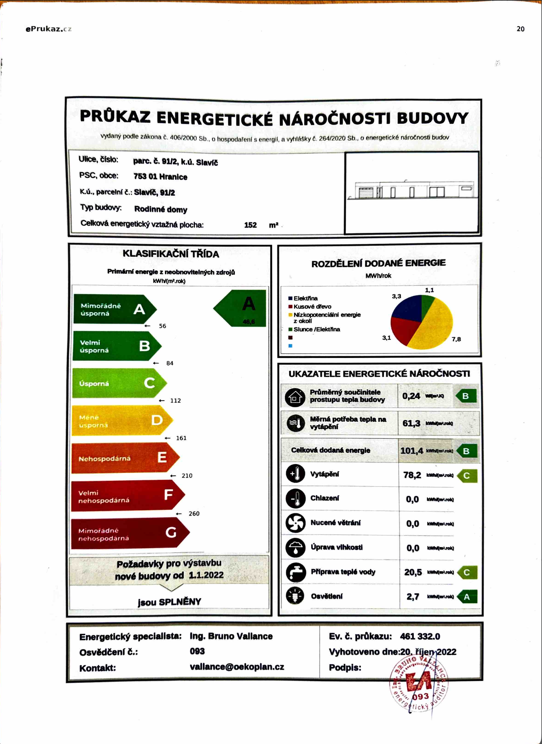 - Nízká energetická náročnost a moderní technologie: tepelné čerpadlo země/voda, teplovodní podlahové vytápění, rekuperace a další