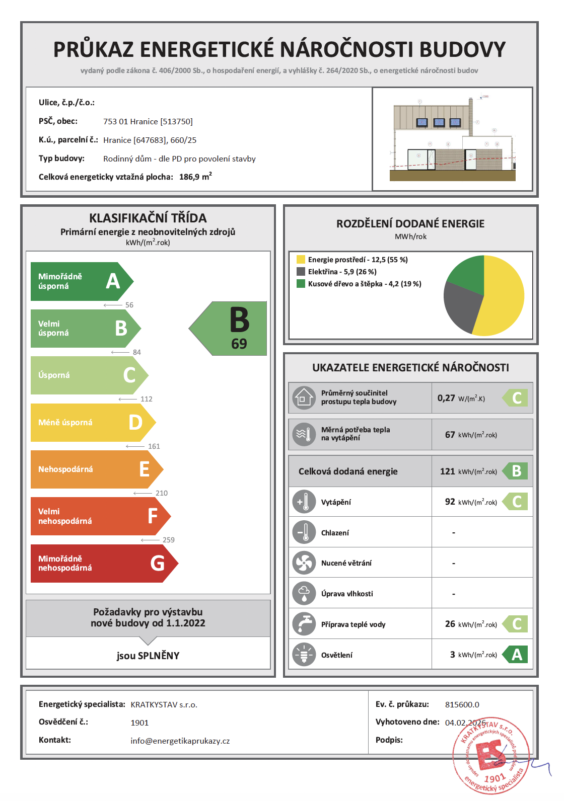 • vytápění tepelným čerpadlem a kompletní příprava na moderní technologie (klimatizace, fotovoltaická elektrárna, kamerový systém, zabezpečení, skryté venkovní žaluzie, přitápění krbovými kamny) – vše řešeno při stavbě, bez nutnosti dodatečných úprav