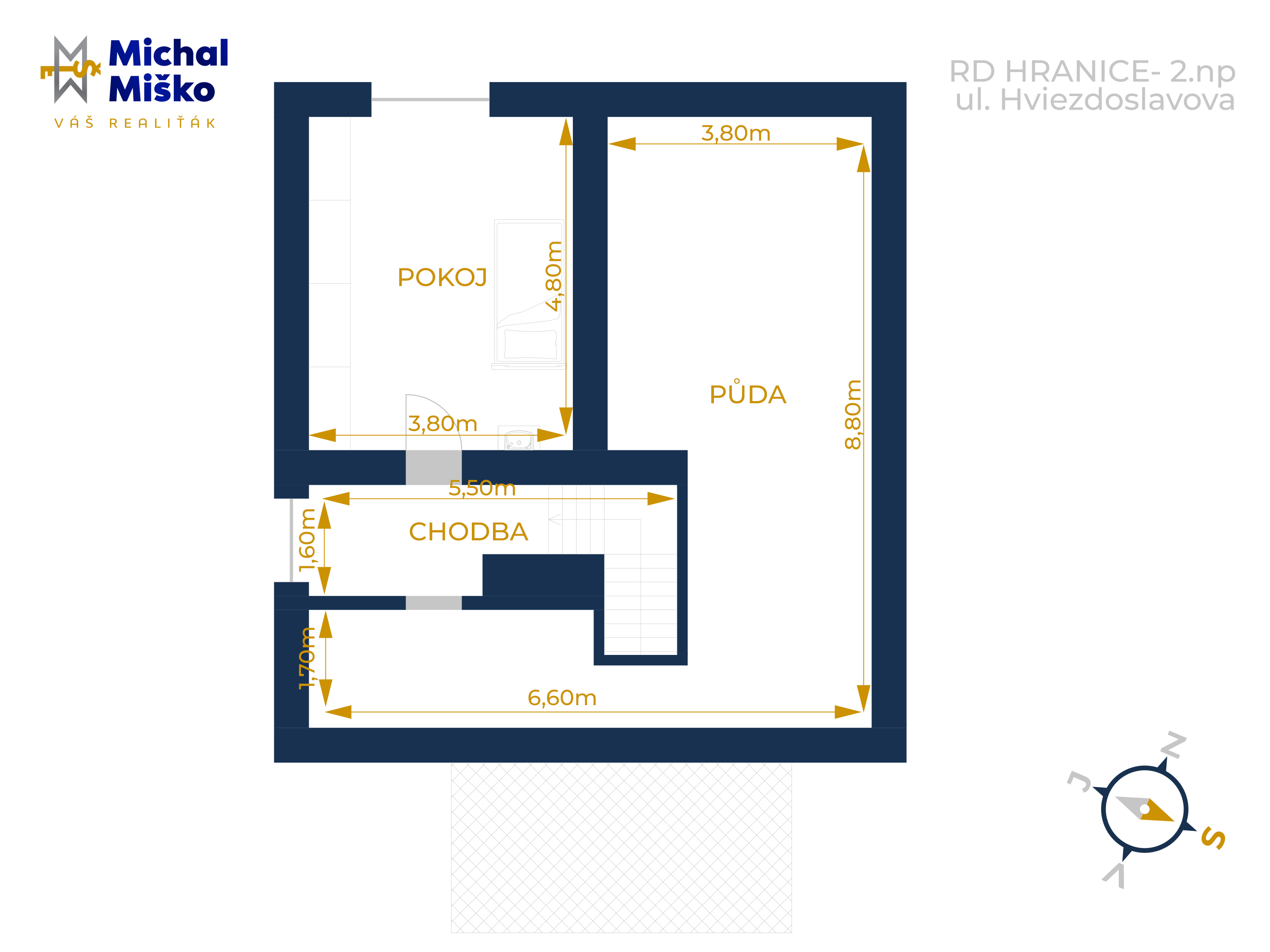 Ve 2. NP se nachází další velmi prostorný pokoj a vstup do půdního prostoru.